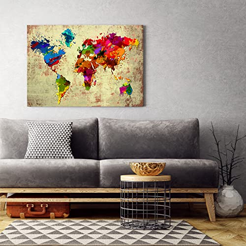 Feeby Schilderij op Vlies Canvas XXL 120×80 cm Geografie Continenten Kaart van de Wereld Muurschildering Kunstfoto’S…