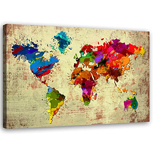 Specification: Feeby Schilderij op Vlies Canvas XXL 120×80 cm Geografie Continenten Kaart van de Wereld Muurschildering Kunstfoto’S…