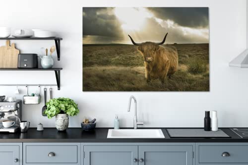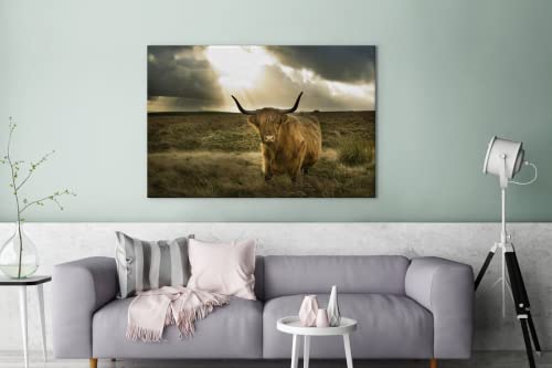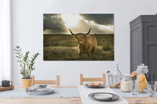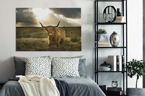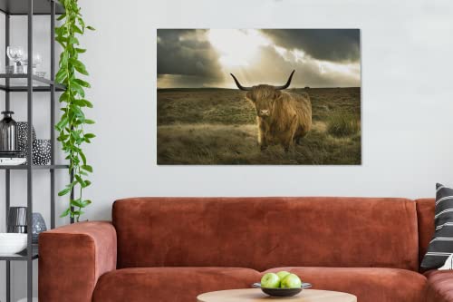 Specification: MuchoWow Canvas Schilderij Decoratie – 120×80 cm – Schotse hooglander – Zon – Gras – Wanddecoratie Muurdecoratie…