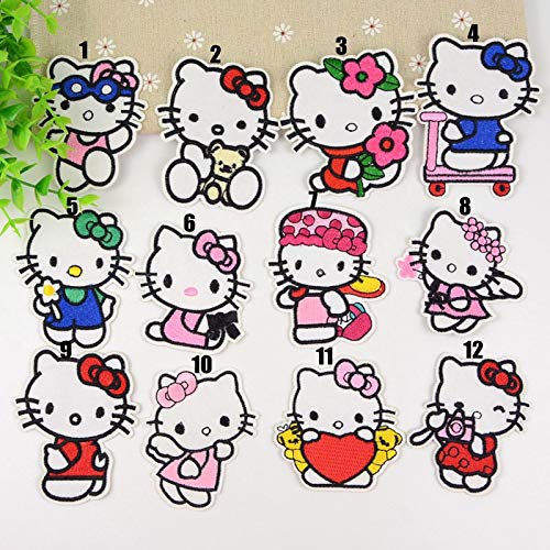Ijzer op Patch Hello Kitty Patches voor Kleding Borduurwerk Applicatie voor Naaien Jassen Rugzakken Jeans 12 Stuks