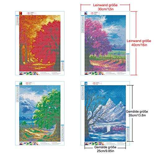 Afmetingen: Diamond Painting Afmetingen: 30 x 40 cm, verpakking bevat: 4 × olieverfschilderij met hoge resolutie canvas, 4 × 1 pakket strassteentjes, 4 × Diamond Sticky Pen, 4 × kunststof platen, 4 × lijm.
